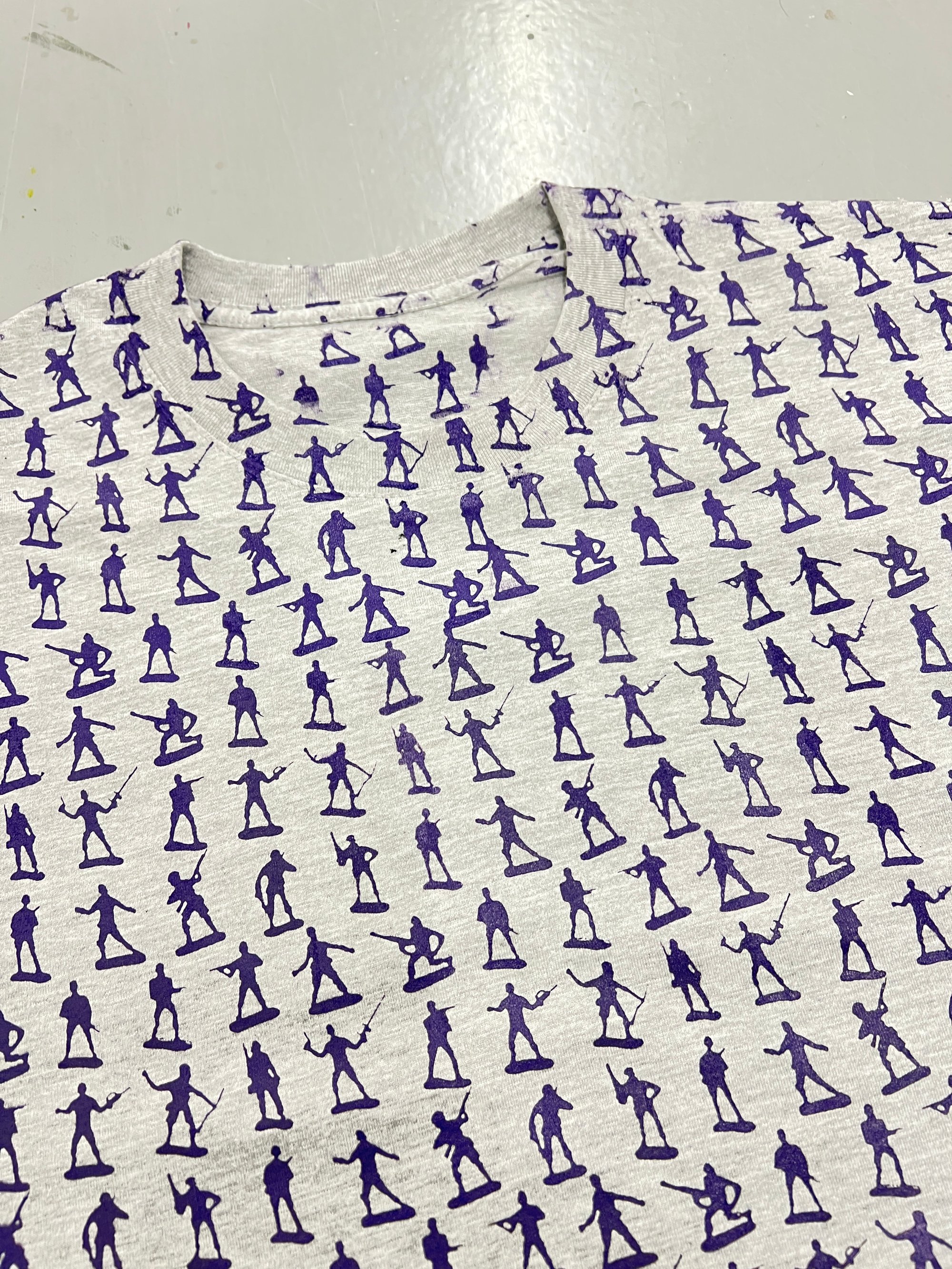 A TEE WITH LIL ARMY DUDES ALL OVER IT