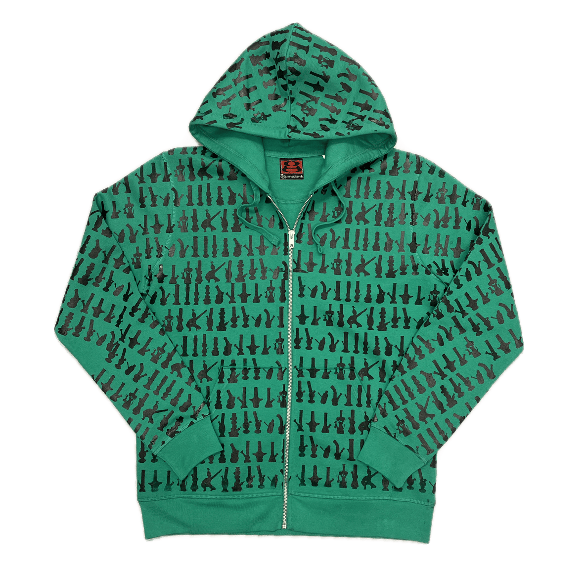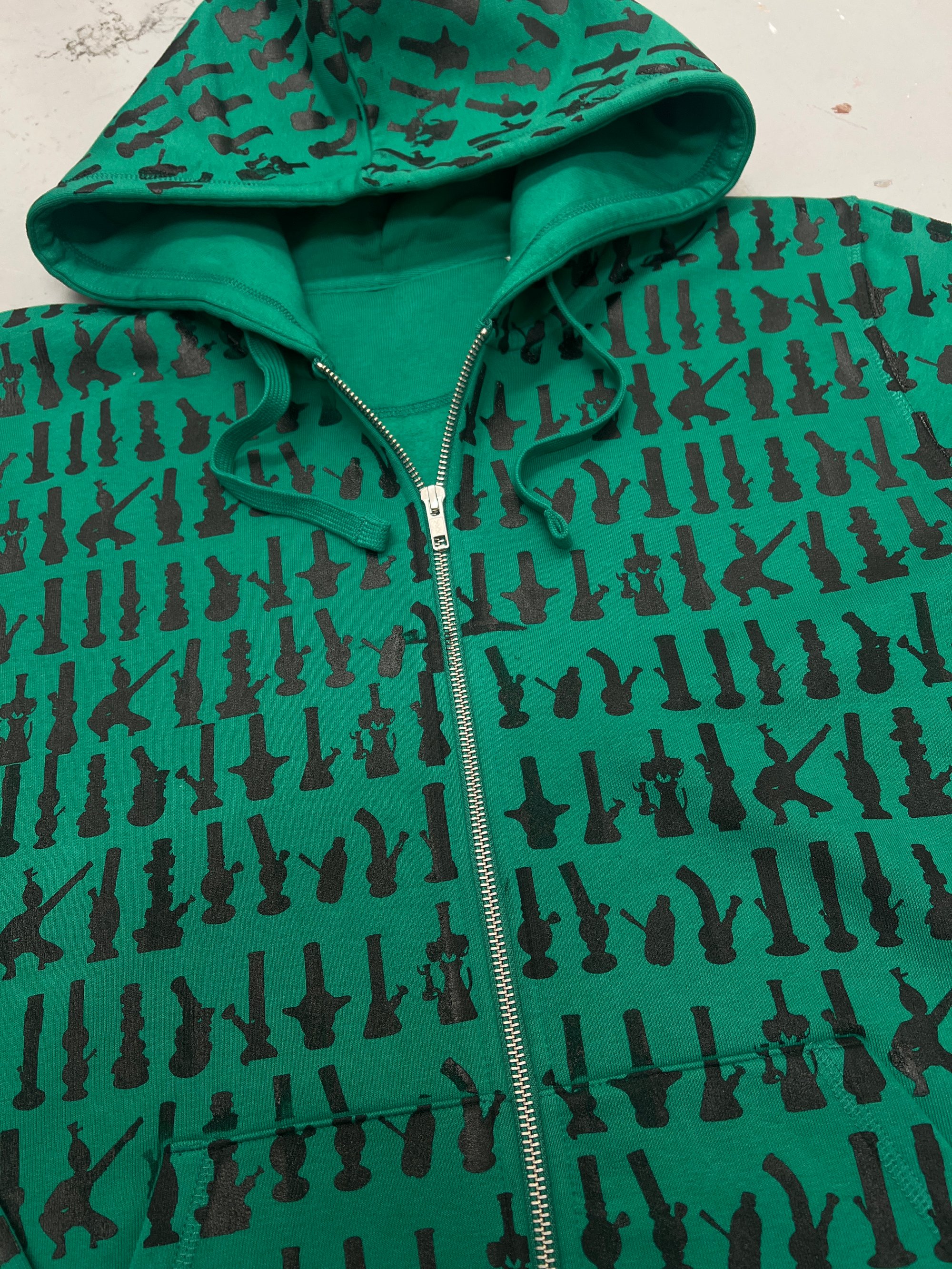 A ZIP HOODIE WITH BONGS ALL OVER IT